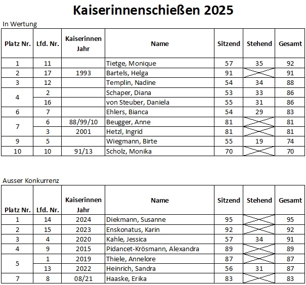 Gestern, am 11. Oktober, hatte die scheidende Kaiserin Susanne Diekmann die Königinnen zum Ausschießen ihrer Nachfolgerin eingeladen.